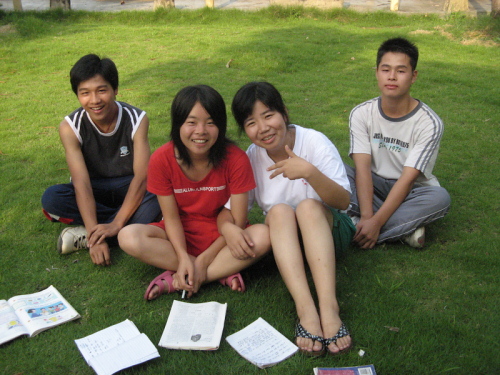 我带他读的时候另一位男生也一起跟读着……我不禁感叹怎么连这么简单的单词都不会读啊!他们两个把头埋的很低很低,尽管我一次一次说 “louder please”,他们的声音还是很小很小。我开始打量他们:他们明显比我们班上的同学要高大成熟(我教的是初一级),桌面上放着八九年级的书,难道他们已初三毕业?但从他们跟读的情况来看,他们好像对英语一窍不通,就像我们平时玩玩学潮汕话,学粤语……天啊,怎么一回事?