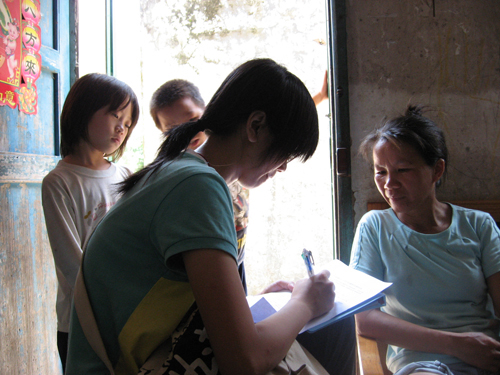 正值暑假期间,洛洞小学大门紧闭。在向村委了解当地情况和人口分布后,问卷调查和访谈也拉开了序幕。通过调查得知,两年前洛洞小学与汤塘中心小学合并,五、六年级的小学生上学都要跋山涉水十几公里,家长们也由此担心不已却又无可奈何。山路难走,雨季时更是险象环生。另外,前往中心小学需经省道和国道,来往的大型车辆又无疑给本来糟糕的路况增加了负面因素。众人拾柴火焰高,村里曾经发动过大家凑钱请汽车来接送学生,可车才开了两趟,司机却都打退堂鼓了。“路难走,孩子又顽皮,出了事情谁负得起?”还有,正所谓道不同,不相为谋。洛洞人说客家话,合并后难免与白话文化的当地人产生纠纷。“他们(当地人)以多欺少,老是半路拦着孩子,打架闹事。那天我盼着阿明(被采访村民的孩子)回家吃饭,可是过了12点还不见人影。我在村头盼啊盼,踮着脚张望。到了一点多才看见阿明一路哭着走回来,满脸都是血。村中的一位母亲泪流满面地诉说着她的心酸……唉,真是可怜天下父母心!