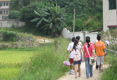 7月21日,天气晴朗。经过几天的资料收集和问卷设定,我们调研组的活动进入了第三阶段,实地采访。通过之前的分析和讨论,我们将目标锁定在清远市汤塘镇的中、小学合并问题上,而我们的第一站就是距离合并学校十多公里的洛洞村。