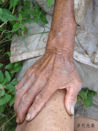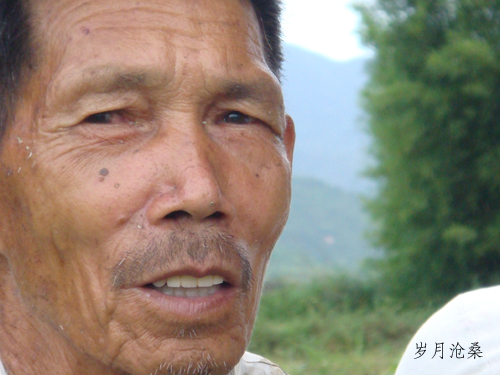 他,高且瘦,白发苍苍;衣衫沾满了泥水,卷起的裤脚拉得很高很高;弓着背脊,两脚陷入刚翻过土的稻田,两手扶着铁梆的木竿,一铁梆一铁梆艰难地往地里锄。艳萍一看到这个七十多岁的老人在地里那么辛苦地劳作,泪水便忍不住溢满眼眶,声音呜咽。我心情沉重,沿着杂草丛生的狭窄田堤走近老农,老农一个转头,我看到了他饱经风霜的沧桑面孔,一道道皱纹如刀割般深刻,让我欣慰的是他绝望的苦涩日子中始终坚定的笑容。