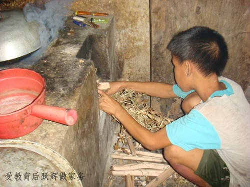 我们劝说跃辉多帮爸爸干点活,这个反叛的顽皮孩子没有丝毫的反应。我们建议老农多点叫孩子干活,老农却无奈摇了摇头,说孩子小,干不了重活。我告诉老农我们有意用自己微薄的资金帮助一下小悦辉,他欣慰地点头表示接受。