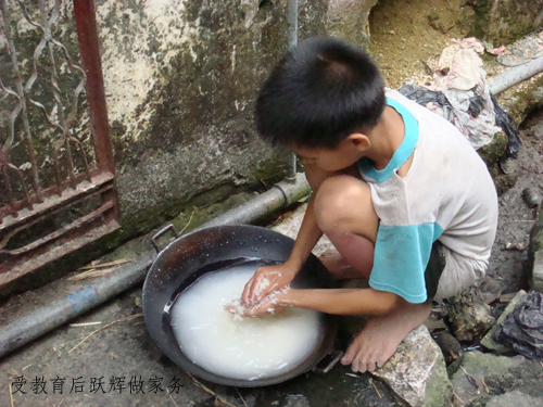通过谈话,我们得知:这个贫苦家庭只有一亩田,耕作的力量仅是老农一人;有一头牛,也可以说是整个家庭的经济支柱——没钱时拉去卖,卖后再买头小的回来,以赚取微薄的差价;有十多只鸡,但因前段时间突发的鸡瘟,已经死掉了一大半,如今只剩下一只母鸡跟一群小鸡;有唯一的亲戚,悦辉的大姑——一个99岁的孤寡老人,由当地的安老院赡养。过去,当地政府承诺过每个月给这个家60块的补贴。但是近两年,每年只是在春节时给60块,之后便什么也没有了。当地的管区对这个家庭也没有特别的关照,老农曾多次到镇府恳求帮他建座房子,但是到现在还是没有落实。老农身体差,有胃病,看病花了不少钱;但最为令他痛心的是11岁的小儿子——不懂事的小悦辉,平日不但不帮忙干农活,连家务活也不沾手。