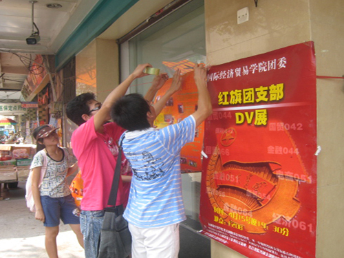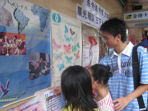2007年7月17日,政管学院三下乡服务队——晨光舰队乘风而进,在清远市汤塘镇市场进行大型海报展,全方位、多角度地展现了广外大的校园文化。