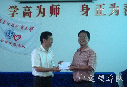其他到会的领导也对队员们的表现给予肯定并寄予厚望。随后,望埠挂职队队员们纷纷发言,和领导老师们分享下乡中的收获和体验。大家都对下乡期间所有领导的支持、配合以及关心表示深深的感谢,并且表示此行所学甚丰,以后将会继续努力,更好地回报社会。最后,广外大领导还捐赠了图书资料款项给望埠镇一中和文立小学,以表对望埠教育事业的鼓励和支持。
