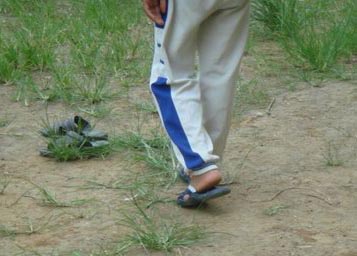 赤脚的他们让我想起我的童年。童年的我也是不大喜欢穿鞋,常常光着脚丫就开开心心地跑去上学了,记得总是母亲软硬兼施地逼我穿鞋。我的小堂弟也是5岁以后才在大人的要求下穿鞋。但是如果大人不在身边,他会把鞋丢得远远的。