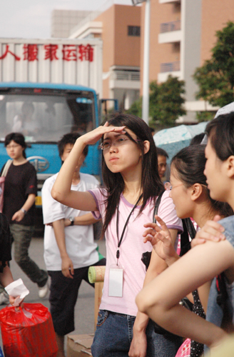 我们的摄影记者穿梭于人流之中,想要捕捉各种各样离别动情的镜头,期待着许许多多长亭送别的感伤,但最后却因为一场突如其来的雨而感到失望。在雨中,同学们赶着把行李往车上送,赶着为身边的人撑一把伞,赶着下雨的时间静静地看一下熟悉的校园,没有意料中的拥抱不舍,没有含情的泪水,没有过多的悲伤,至少表面上没有。