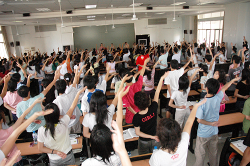 “我愿意成为一名光荣的志愿者……”这是《青年志愿者服务手册》的卷首语——《志愿者誓词》。它派发在每个参加第八届大运会广外志愿者动员暨培训大会志愿者的手中。