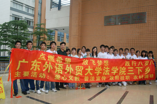 今年5月22日,伟德bv国际体育法学院在英德市第六中学与该市团委、六中三方签定了建立三下乡社会实践基地的合作协议,使暑期“三下乡”社会实践活动逐渐朝着“基地化、长期化、专门化”的方向发展,此次组织三百六中学子参观广外大便是其中的重要活动之一。