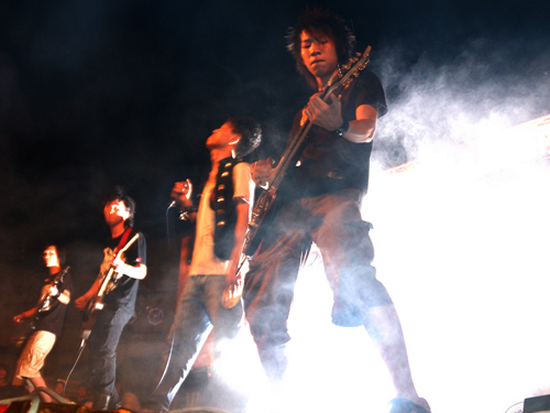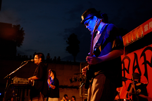 唱响当晚第一首歌的是血蝴蝶乐队,他们激昂的歌声响彻一望无际的黑夜,精彩的表演使现场的观众欢呼声不断。第二个出场的DownTown Monks乐队则带来了一首英文歌曲。歌声柔美而富有节奏感,穿透微薄的空气,使现场又增添一份惬意。