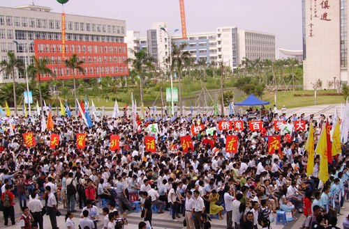 5月16日上午,广东首届大学生科技学术节暨第九届“挑战杯”广东大学生课外学术科技作品竞赛终审决赛开幕式在广州大学图书馆广场拉开了帷幕。广东省副省长雷于蓝、省政协副主席陈蔚文、团省委书记谭君铁等领导以及相关单位、参赛高校有关负责人和来自全省参赛高校的3000多名学生代表一起出席了开幕式。