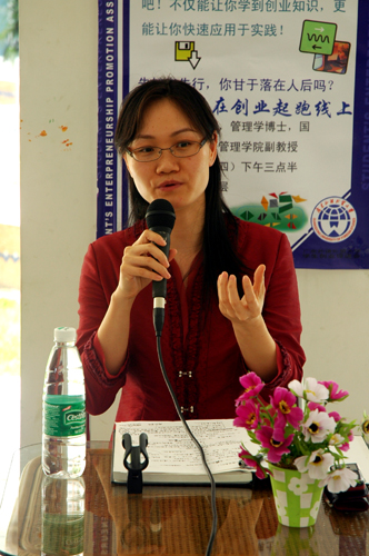 她从创业核心、创业过程的本质、创业是可以管理的等几个层次向大家分析了创业的一些最基本理论,她指出“创业核心是市场机会而不是创新,这是一个识别机会、捕捉机会、整和资源到创造新价值的过程”,她希望大家能把握住机会,就如同务实的广东人一样,看到什么可以赚钱就去赚什么,机会才是创业的核心。
