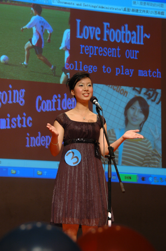 1号选手段瑞芳用深情的腔调朗诵了一篇《I HAVE A DREAM》,抑扬顿挫的声线赢得了台下阵阵欢呼;3号选手苏希露简洁扼要地为大家阐述英文名“CC”的含义,最后“Let me receive your vote!”一句落地有声;7号选手李珩则配以精美的电子杂志现场演绎了一段“木棉花语”;12号选手郑璇构思独特,向观众徐徐道来其对法国的无限向往……
