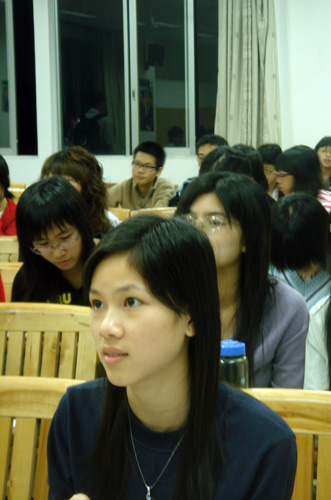 卜文忠以“猜猜照片中的人物是谁”的介绍方式拉开了讲座的序幕。尽管同学们绞尽脑汁还是没能猜出相片中的人物是翻译大家赵元任,但这道关子还是激起了同学们对讲座的兴趣。接着,卜文忠又列举了数位1900年到1949年间的翻译大家,如傅雷、季羡林、朱生豪等,激励大家对翻译事业要有信心,中国的人可以在翻译方面取得惊人的成绩。