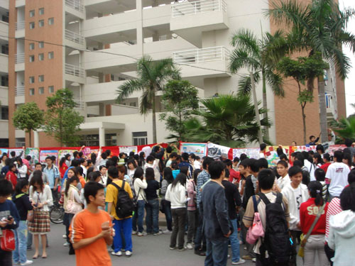 四点,刚制作好的海报一展出便吸引了大量的同学前来观看投票,并签字留下了自己对和谐的感言。海报凝聚了同学思想的精华,主题多样,色彩或浓重或素雅,形式各有千秋:以“和谐消费”为主题的海报将中国传统书法完美的融入其中;金融全英班则别出心裁地以漫画的形式描述了一个和谐感情的故事;中国地图也被搬上海报,经济班的同学们以“和谐中国年”吸引众人的眼球,全球的和谐共处也成了海报的主题……各班的海报都别具特色,投票现场盛况空前。许多同学都笑着说:选票只有一张,而好的海报却有这么多!