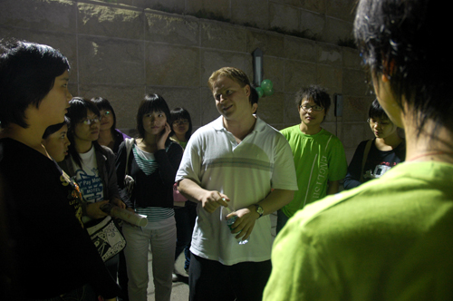 本网讯 3月16日晚8点,南校英语俱乐部环大学城英语角开幕式在隧道口隆重举行。前来参加此次开幕式的嘉宾除了伟德bv国际体育商英学院的外教Charles Keffier,来自广中医、华工等其余八所大学英语协会的代表也观看开幕式表演。
