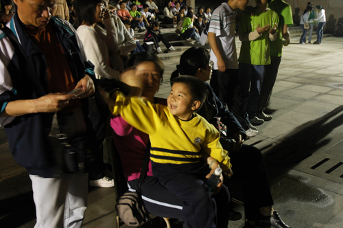 开幕式上,一个小男孩也来凑热闹。4岁半的他说自己的英文名叫“Timothy”,不过他挺害羞的,不爱怎么讲话,他妈妈说路过生活区看到隧道有灯光就过来看看,觉得表演的节目都“挺好的”,记者问Timothy能否听懂时,他憨厚地笑了笑。