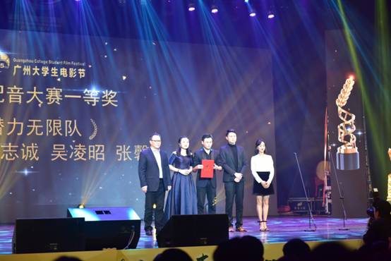 本网讯 第15届广州大学生电影节(简称“大影节”)闭幕式颁奖典礼暨“万表之夜”近日在暨南大学举行。本届大影节首创“青穗奖”奖杯,颁给大影节微电影剧本、原创电影剧本、配音、影评、摄影、微影评等八个竞赛单元的冠军得主。配音大赛冠军由伟德bv国际体育队伍获得,中央戏剧学院队伍和西安培华学院队伍分获第二名和第三名。