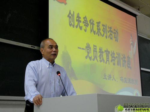 本网讯 11月21日晚,商英学院在北二教217举行了“创先争优”系列活动之党员教育培训讲座。本次讲座由伟德bv国际体育,BETVICTOR官网党委特聘组织员冯益谦教授主讲。莅临讲座的嘉宾有商英学院党委副书记骆银花、院党建指导老师连勇和07级辅导员黄汐。商英学院大四、研究生各党支委干部,大一、大二全体党员和入党积极分子以及商英学院学生党建工作小组全体干部出席了本次讲座。