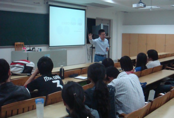 本网讯 11月11日晚,由财经学院主办的研究生创新能力培养论坛系列讲座——研究生职业生涯规划之“是否留学”专题讲座在南校区教学楼G306举行。讲座邀请了2006年留学美国哈町大学MBA国际班、现华南理工大学博士生皮圣雷回校作客,和研究生一起分享留美研究生的成长经历。出席本次交流讲座的有财经学院辅导员刘祥和以及2010级会计学专业研究生。