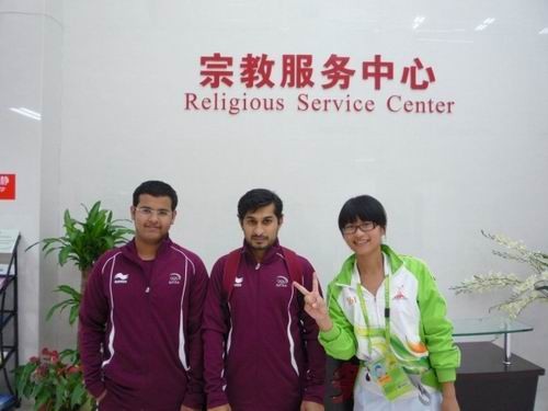 中心的主要功能就是接待各宗教的信徒,这些信徒中有运动员、教练、随团官员和工作人员。信仰伊斯兰教的部分信徒是我们中心的“常客”。伊斯兰教每日礼拜五次,分别是晨礼、晌礼、晡礼、昏礼、宵礼。对于知道中心相关情况的信徒,他们可以自行达到活动室,志愿者只需点头微笑示意即可。但大部分的访客都是第一次来到中心,志愿者需要主动上前询问需求和介绍中心情况,然后带访客到各个活动室参观或进行他们的宗教活动。接待的过程中,志愿者用熟练的英语和访客进行交流,有时会遇到一些口音的问题(亚洲部分国家的英语口语都带有该国的口音),志愿者也做出机敏的反应,在肢体语言的帮助下解决了语言障碍,为访客提供了及时有效的服务。