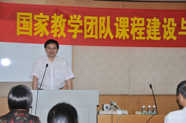 国家级教学团队带头人王桂珍教授对英语专业基础英语系列课程教学团队两年来所取得的成绩进行了阶段性总结。她简要地总结了教学团队在结构优化,教研绩效、课程建设和课程改革取得的成绩,同时指出,教学团队建设的最终目标是提高教学质量,而课堂教学质量的提高需要创新的理念和科学的实践,课堂教学质量的升华需要汇聚三股知识“活水”,需要三种力量的支撑:源于科技前沿新发展的力量,源于教师的科研创新的力量,源于学生个人认知的力量。三股活水的汇聚可以使学生在课堂上学得更多更活,三股力量的支撑可以使教师在教学过程中获得教学效果的最大化,从而达到师生双赢。只有这样,才有机会教出大师,学出精英。
