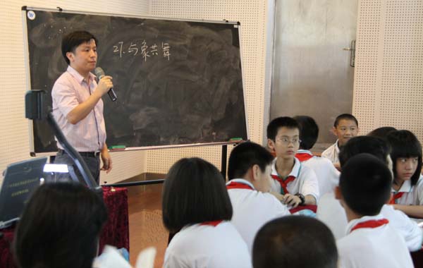 李少林老师在小五1班执教的生本语文课《与象共舞》让学生探讨人与动物、人与自然的关系,感受了和谐相处的美好。课堂上,既有小组探究合作的学习,也有注重个性发展的学习;既有课内阅读的深化,也有课外知识的延伸。