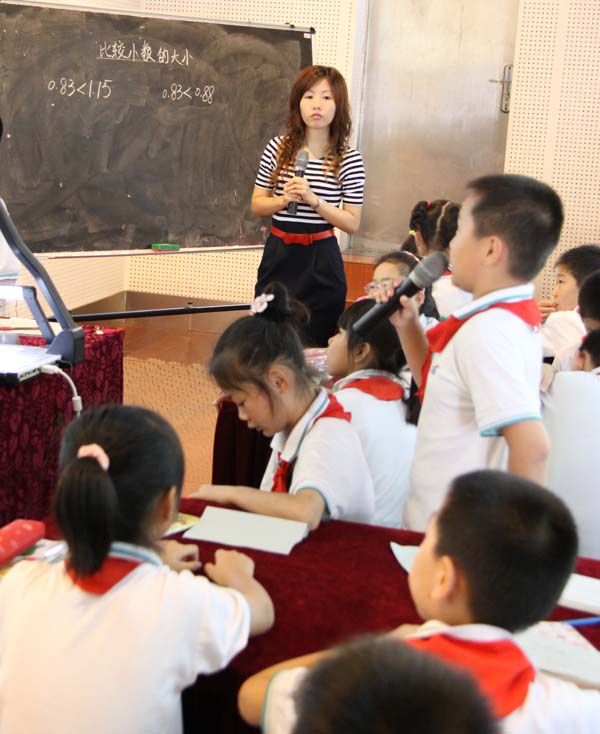 苏洁薇老师在小三1班执教的生本数学课《比较小数的大小》上,由生活实例加深对小数内涵的理解,并再此基础上比较小数的大小,培养学生数学意识和数学思想,整节课以学定教,以生为本,或激辩,或补充,或讨论,生生互动。高效展示了三年级学生超出实际年龄的逻辑推理和学以致用的数学能力,课堂氛围十分积极融洽。
