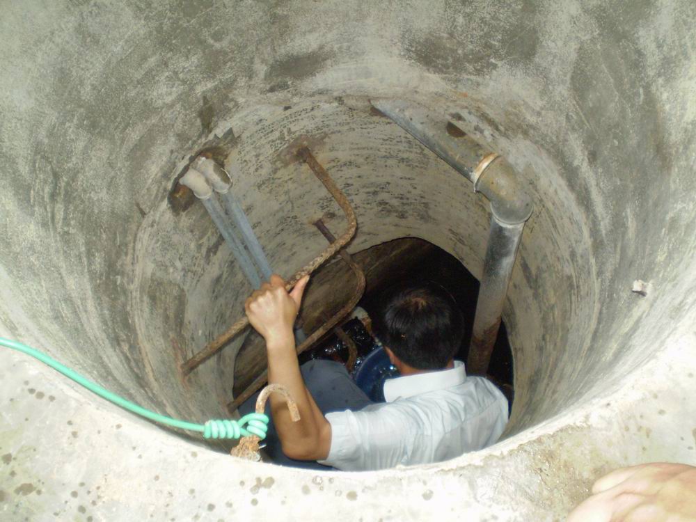 有关部门人员在清洗水池