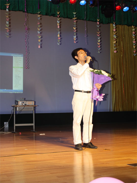 本网讯 6月11日,夜幕初临,东语学院的学子便在六教报告厅挂起一串串彩灯,准备迎接东语学院2006级毕业晚会的到来。东语学院院长韦立新、院党总支书记林绍雄、副院长全永根、党总支副书记郝建萍以及多位老师和校友出席了本次主题名为“且行且珍惜”的东语学子毕业晚会。