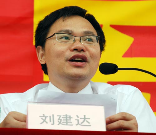 彭志芳向军训团授旗 随后,刘建达作军训动员讲话。他对新生的到来表示热烈的欢迎,对教官们表达了崇高的敬意,并且为新生介绍了“军训”对大学生活的重要性,希望同学们在军训期间严守纪律,听从教官指挥,刻苦训练,耐得住辛苦,耐得住训练的枯燥,以高昂的热情完成训练项目,发扬“流血流汗不流泪”的精神。