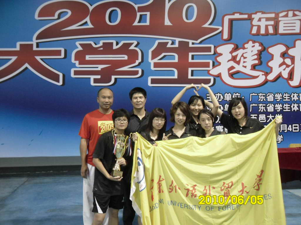本网讯 6月6日下午,为期三天的2010年广东省第二届大学生毽球锦标赛在江门五邑大学的体育馆落下帷幕。这是由广东省学生体育联合会主办,广东省高校最高级别的毽球赛事。伟德bv国际体育毽球队女队勇夺女子普通组亚军,男队则止步小组赛。