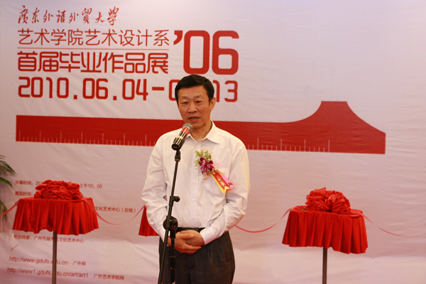 李于昆首先代表艺术学院向出席仪式的各位领导和专家表示欢迎和感谢。他从三方面概括了此次展览会的意义,一为“前无古人”,作者均为艺术设计专业的首届毕业生,相对于艺术设计系来说是前无古人;二为“真诚表达”,本次作品展为学生在伟德bv国际体育四年耕耘成果的集体亮相,是对梦想的一次真诚表达;三为“校馆联展”,越秀区文化馆作为伟德bv国际体育艺术学院的实习基地,本次展览能增进两者之间的合作友谊。
