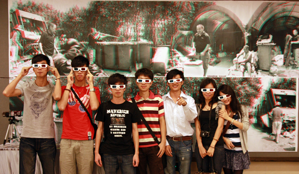 其中,高荣权同学设计的作品《苏大叔的天天》因其可呈现出的3D效果引发了参观者的浓厚兴趣,纷纷戴上眼镜感受一番。一位老人戴起眼镜观看时赞不绝口,“看起来像真的一样,人好像都浮在上面!”他还边伸手试探着摸图片边说:“我看看能不能摸得到!”