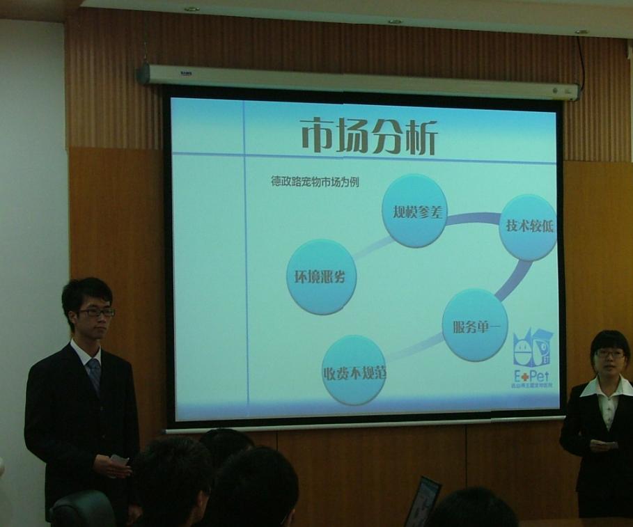 在科研项目课题展示环节,科研项目的参赛选手们结合专业知识与调研实践,就当前的经济形势及政府政策对经济产生的影响作了框架性分析。创业类项目的评选较为激烈,每个申请项目从市场分析、竞争对手分析到公司战略分析都堪称完美,充分展现了经贸学子扎实的专业素养及市场战略眼光。其中项目三《part-time图书馆》以及项目四《懒人堂》表现极为抢眼。在各组选手展示完毕后,评委就选手在展示过程中所涉及的专业问题展开了探讨,选手们对此又提出了自己的观点。