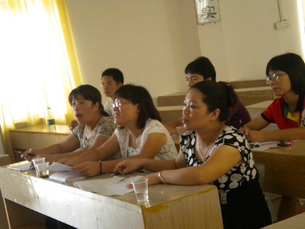 由于农村情况特殊,小学部的英语老师很多都没有专业英语的背景。他们特别珍惜这次培训机会,每天顶着烈日按时来到教室,课堂上不时双眉紧锁沉思,提出困惑。