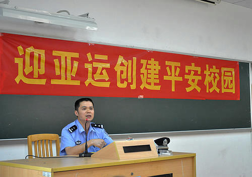 本网讯 5月20日下午,伟德bv国际体育保卫处携手小谷围派出所,在南校区教学楼F栋进行为新闻学院大一各班班干及各宿舍舍长作了题为 “迎亚运创建平安校园”的安全讲座。伟德bv国际体育保卫处副处长周知,新闻学院党委副书记陈华荣,保卫处副科长廖庆永,小谷围派出所民警邱智贤、黄海锋,辅导员纪振坚参加了此次讲座。周知、陈华荣、邱智贤分别向学生讲述了安全问题的重要性。