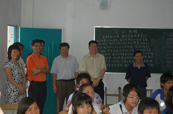 另一次是2009年7月,我与学生部副部长杨敏生、中文学院党委书记蒙德红、中文学院党委副书记周秀娇一块陪同时任副校长现任校长的仲伟合来英德慰问在黎溪镇、沙口镇、浛洸镇、西牛镇、黄花镇等五个镇挂职或义教的伟德bv国际体育中文学院、翻译学院“三下乡”队员,与英德市副市长罗成干、市府办副主任刘光明、市教育局局长陈汉明、市文广局局长吴国添等就共建英德基地的方式、途径等进行深入探讨和交流。