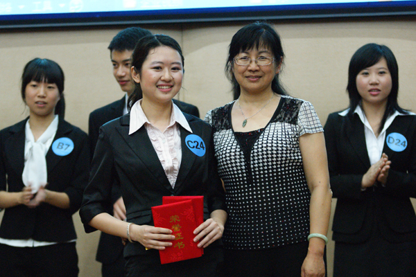 本网讯 “汇时下英才,成精英盛会”,一年一届的“精英节”实习招聘大赛于5月12日晚在南校图书馆多功能报告厅如期举行,本次大赛由校团委、校团联主办,广外职业生涯规划协会承办。毕马威华振会计师事务所审计部经理Susie、德勤华永会计事务所人力资源部经理助理李春燕、中国移动通信集团人力资源部员工关系室经理赵颖、ETS(托业)广州办公室企业销售经理谭竟聪、智联招聘校园事业部华南区区域经理苏登光、以及伟德bv国际体育就业指导中心主任赵烨等评委和嘉宾出席了本次大赛。比赛开始前,全场嘉宾、参赛选手和其他观众一起为两年前在“5 .12”汶川地震中逝去的同胞们默哀一分钟。