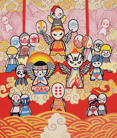 王超同学极具民族特色的插画,通过变相可爱的动物拟人化的手法和明丽的色彩,将一张张装饰画呈现在眼前。