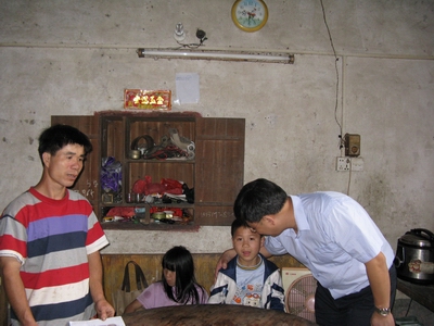 何勇斌勉励贫困户孩子好好学习