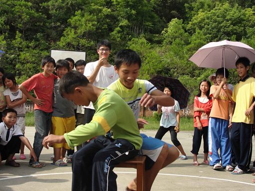 紧随其后的是四人五足、天气预报、抢凳子以及拔河四个趣味小游戏。对孩子们而言,“四人五足”也是个新鲜的游戏,各班班主任在赛前都组织过学生进行训练,在“1 2”、“1 2”的口号声中,孩子们以最协调的动作和最快的速度冲向终点。有个小组在比赛中摔倒了,但依然顽强地站了起来,并在老师的指导下完成比赛。这个游戏将趣味运动会推向了一个高潮,还提高了孩子们的团结合作能力。