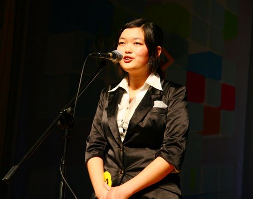 本网讯  4月27日晚七点,商英学院第八届新生口语大赛12位决赛选手在六教报告厅进行了精彩的角逐。出席本次大赛的嘉宾有商英学院党委书记谢应东,副院长(主持工作)郭桂杭,副院长朱文忠、彭玲玲,党委副书记骆银花,英语系主任孙肇春等。评委由谢薇娜,杨丽,高兴刚,杨文英等老师担任。商英学院外籍教师Penoke夫妇担任大赛的question master。经过两轮角逐,来自商务093班的吕航脱颖而出,摘取了本次大赛的桂冠。