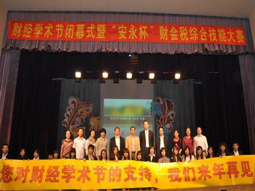 本网讯 4月29日,财经学院首届财经学术节闭幕式暨“安永杯”财会税综合技能大赛决赛在南校区B8学术报告厅隆重举行。参加本次活动的嘉宾有校教务处处长詹文都,校学生处处长植秀聪,校团委老师余泽浩,安永会计事务所合伙人黄寅,财经学院院长陈伟光,副院长刘中华、李华,院党委副书记许志超等。