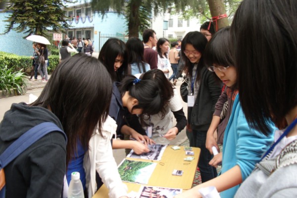 设计考究的客家土楼、恬静自然的客家梯田风光、特立独行的客家民俗……风格各异的图片不仅引来围观,更有同学不时掏出手机拍照。客协工作人员通过展板解答在场同学的疑问,传授有关客家文化的知识,而小游戏环节也吸引了一批学生前来参与。