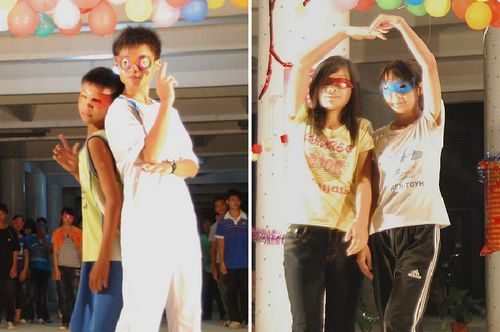 Youngster队员们为告别会用尽心思,早早便着手准备布置现场。吹气球、贴彩纸、摆鲜花,各项工作进展顺利。Youngster别出心裁,用红色卡纸和废弃包装纸拼成“圭岗”二字和一颗大大的心,所有队员在“心”上签名后将之挂在会场正上方,祝福美好和谐的圭岗。19点30分,近千名师生准备就绪,舞会正式开始,分为颁奖会、班歌展示和师生互动三个环节。