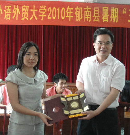 本网讯 7月30日,广外2010年郁南县暑期“三下乡”实践活动汇报会在蔡朝焜纪念中学教工会议室举行。郁南县教育局局长林少玲,广外学生处处长植秀聪、校团委书记刘志军、校团委老师余泽浩,蔡朝焜纪念中学卢副校长,参与转岗教师培训的所有基层英语教师以及伟德bv国际体育校级学生组织郁南三下乡服务队所有成员出席这次活动。