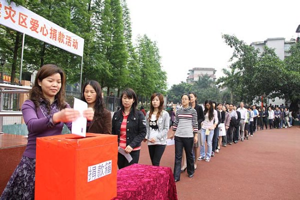 伴随着《让世界充满爱》的音乐,老师们纷纷解囊,同学们则把平时省吃俭用的零花钱捐献出来,以实际行动为灾区同胞送上温暖、传递力量,诠释着中华民族“一方有难、八方支援”的优良传统。据悉,这些捐款将通过广州市“红十字会”献给玉树灾区人民。