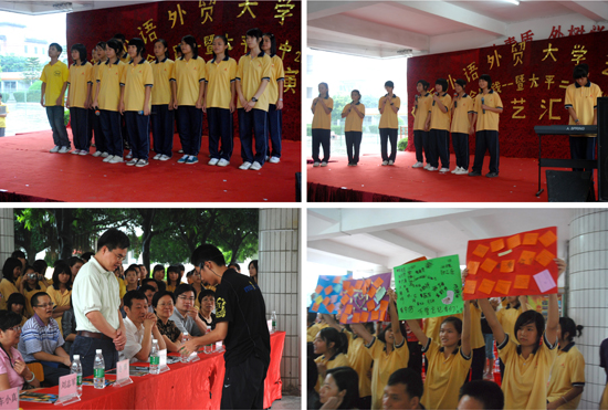 上午9时汇演正式开始,许国彬发表了讲话,他首先感谢太平镇为伟德bv国际体育学生暑期三下乡社会实践活动提供的支持和帮助,感谢太平二中精心组织、积极发动学生踊跃报名;其次,他肯定了本次三下乡社会实践取得的成绩,他表示,艺术学院三下乡能充分发挥自身的专业优势,积极开展支教、送文艺下乡、送文化下乡等社会实践,活跃了当地文化,为当地教育事业的发展做出了贡献。最后他表示,三下乡活动对每个队员来说都是一次很好的锻炼机会,通过社会实践增长见识,让能力在实践中得到提升。对于双方来说是互助共赢的,希望今后加强合作,把三下乡社会实践越做越好。