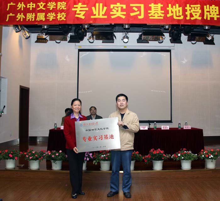 随后,刘志明、陈彦辉分别代表附校和中文学院进行了实习基地的签字和授牌仪式。据了解,中文学院首批专业实习本科生4人,外国留学生20人目前已跟随附校老师参与备课、听课、授课和班主任工作等活动。