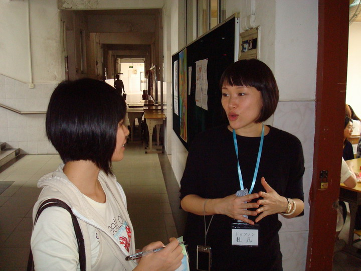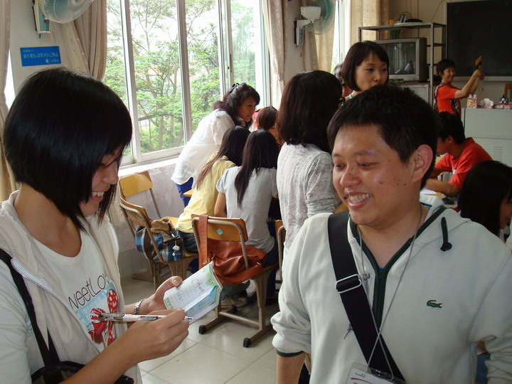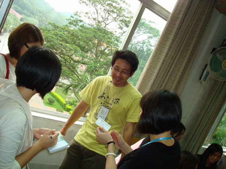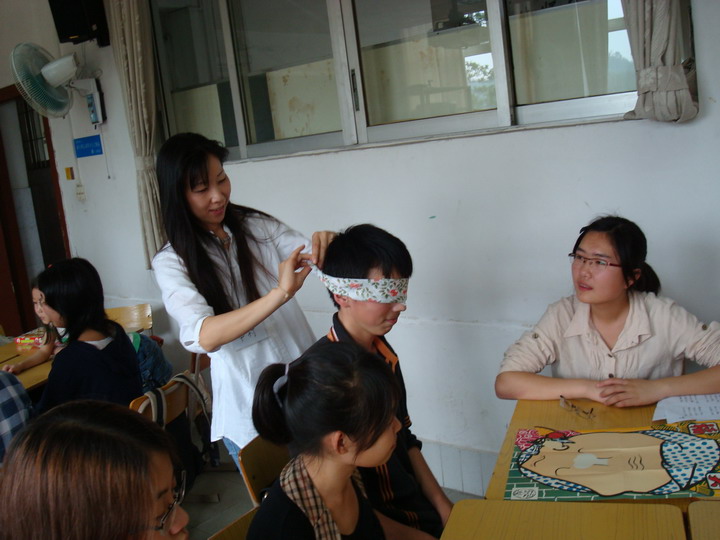 女士们选择了日语纸牌作为游戏互动的“开胃餐”,这是一项以日语知识为基础,用竞速、竞多的方式争胜的游戏。快速刺激的游戏氛围让日语专业一年级的学生很快摆脱了紧张的心情,投入到了愉快的游戏当中,与女士们打成一片。在后来的卡通人面拼图游戏中,一位同学需要蒙住眼睛在队友的提示下填完一副完整的五官图,这大大培养了队友之间的默契,也增进了学生与日本代表们的友谊,掌声与笑声在会场中此起彼伏。